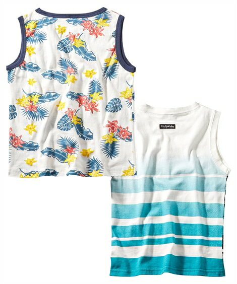 綿100%・接触冷感スリーブレスTシャツ2枚組(男の子 子供服) ニッセン nissen オレンジ+グレー グリーン+オフ系 カラー オレンジ+グレー/グリーン+オフ系 サイズ 100/110/120/130 備考 単位:cm ※サイズの誤差は多少発生します。