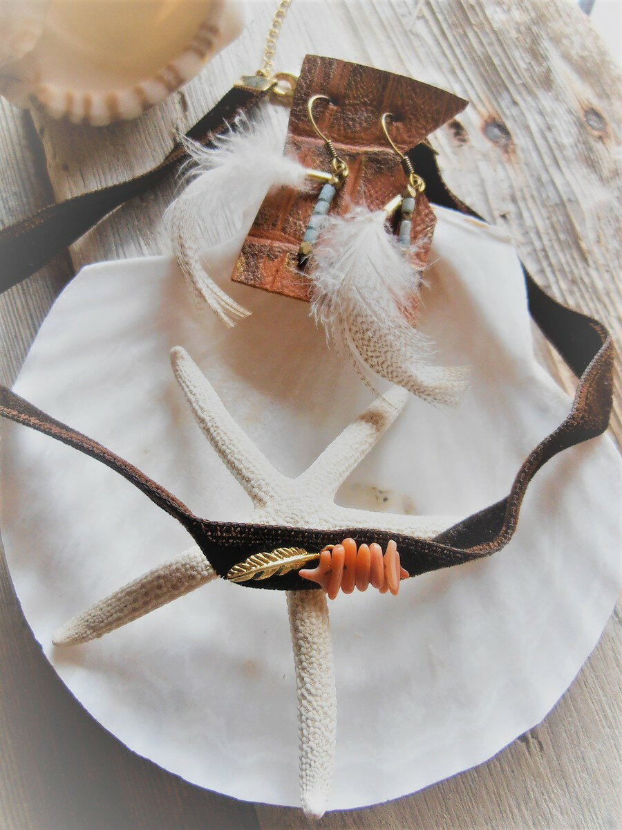 Mermaid jewelry ターコイズ 赤サンゴ チョーカーネックレス ピアス セット フェザーチャーム ギフトセット オリジナル ハンドメイドアクセサリー オリジナルハンドメイドアクセサリーネックレス・ピアスセット ギフトバック付き 赤サンゴ、フェザーチャームがポイントのチョーカー ネックレス36cm+5cmアジャスター。