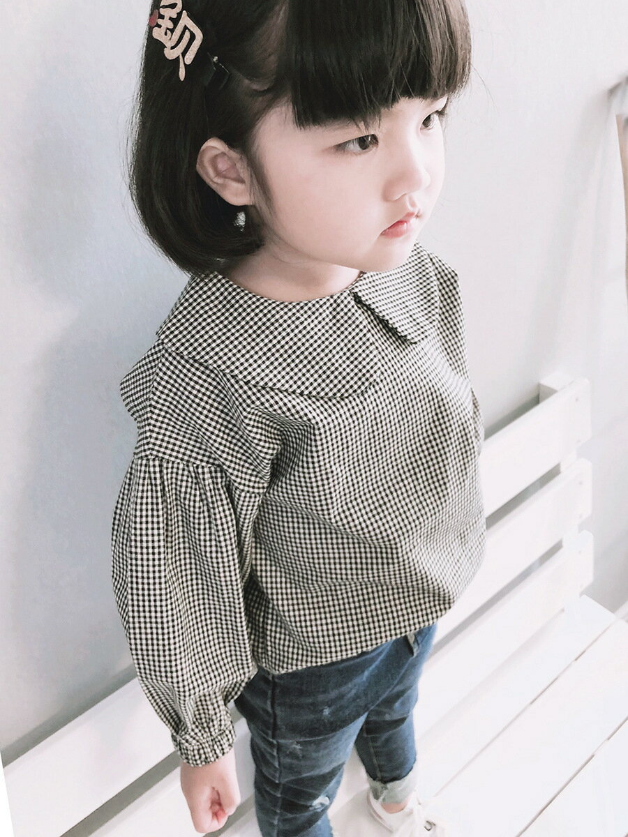 送料無料ブラウス キッズ 長袖 ピーターパンカラー 子供用 キッズ トップス チェック柄 バックボタン ウィンドカフス おしゃれ 可愛い かわいい ガーリー 女の子 女児 子供服 子ども服 こども服